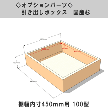 ◇オプションパーツ◇引き出しボックス◇国産杉(DIY組立キットテレビボード用)棚幅内寸450mm用100型(サイズ:幅445mm×高さ100mm×奥行350mm) 【小型商品】