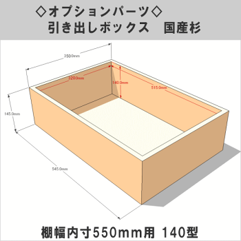 ◇オプションパーツ◇引き出しボックス◇国産杉(DIY組立キットテレビボード用)棚幅内寸550mm用140型(サイズ:幅545mm×高さ145mm×奥行350mm) 【小型商品】